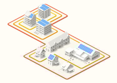 Beim vZEV können Gebäude, die nicht direkt miteinander verbunden sind, trotzdem gemeinsam Solarstrom teilen. Die Abrechnung bleibt lokal und transparent, der physische Zusammenschluss ist jedoch nicht notwendig. Dies ist ideal für Areale oder benachbarte Betriebe. Dadurch wird der Eigenverbrauch der lokalen Stromproduktion gesteigert und dank eingesparten Netzkosten die Wirtschaftlichkeit der Solaranlage deutlich erhöht.